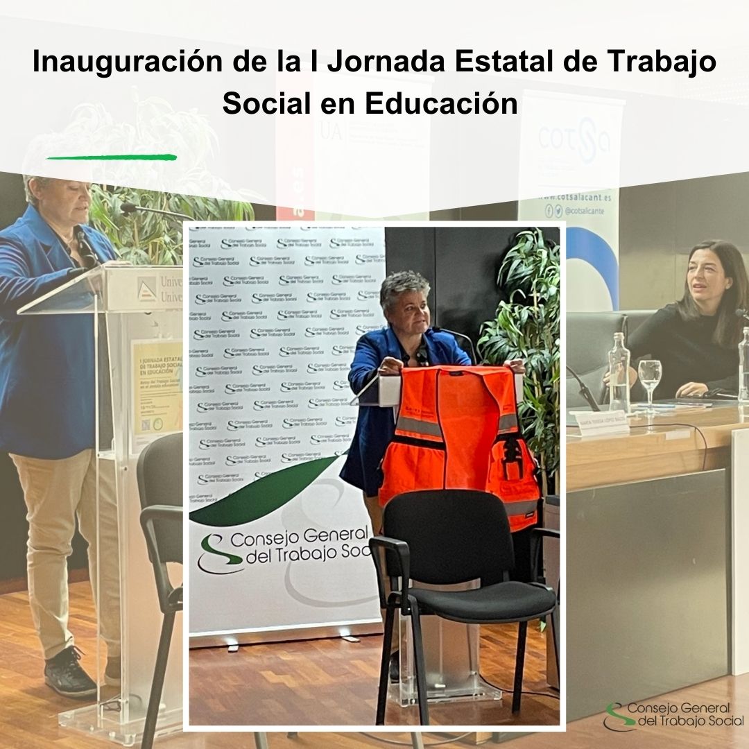 La inauguración contó con la presencia de María Elena Fabregat Cabrera, vicedecana de relaciones institucionales, políticas de igualdad y movilidad de la Universidad de Alicante; María Teresa López Baeza, presidenta del Colegio Oficial de Trabajo Social de Alicante y Emiliana Vicente, presidenta del Consejo General del Trabajo Social, quien abrió la Jornada haciendo una mención especial a la ciudadanía afectada por la DANA y un reconocimiento y agradecimiento a las y los trabajadoras y trabajadores sociales que una vez más han puesto lo mejor de la profesión en una situación de emergencia, destacando así la importancia de la presencia del Trabajo Social para enfrentar los desafíos sociales en la prevención, contención emocional y reconstrucción y para atender a las necesidades y daños sociales y emocionales de los niños, niñas y adolescentes en el ámbito educativo. María Dolores Soler, trabajadora social UEO Alacant; vocal y representante de educación del Consejo General del Trabajo Social, cerró la mesa con la presentación del texto “Funciones del Trabajo Social en Educación”, un documento de consenso desarrollado por el Grupo de Educación del Consejo General del Trabajo Social, que ha permitido tener una amplia y actual visión sobre la situación de la profesión en educación y que tenéis a vuestra disposición de manera gratuita en las sección de publicaciones de la página web del Consejo General del Trabajo Social.
