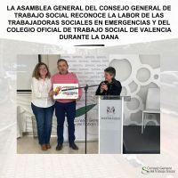 La Asamblea General del Consejo General del Trabajo Social reconoce la labor de las trabajadoras sociales en emergencias y del Colegio Oficial de Trabajo Social de Valencia durante la DANA