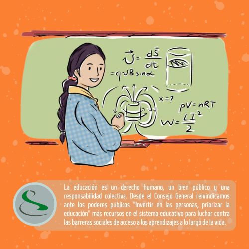 Desde el Consejo General reivindicamos ante los poderes públicos dar prioridad a la educación, realizando mayores inversiones para conseguir que niños y niñas, jóvenes y adultos puedan desarrollar un proyecto de vida digno, en igualdad de condiciones, con posibilidades para adaptarse a la nueva situación tecnológica, alcanzar la igualdad de género y vivir en un planeta sostenible.