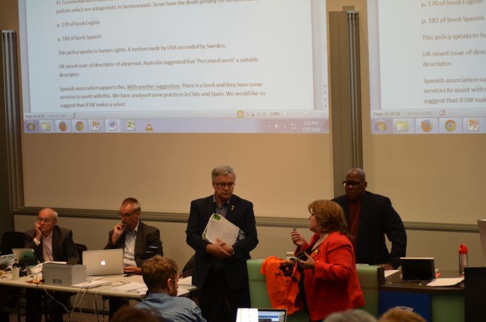 La Asamblea General de la FITS aprueba por mayoría la moción propuesta por el Consejo General del Trabajo Social (CGTS) en materia de homosexualidad y trabajo social y adopta el libro editado por el Consejo “Homosexualidad y Trabajo Social – Herramientas para la reflexión e intervención profesional”, de Angel Luis Maroto, como herramienta de trabajo con el colectivo de lesbianas, gays, bisexuales y transexuales.