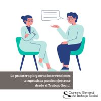 Además el Consejo General clarifica que el ejercicio de la psicoterapia y otras intervenciones terapéuticas, con la suficiente experiencia profesional y formación teórica requerida, puede ser llevado a cabo por las trabajadoras sociales.