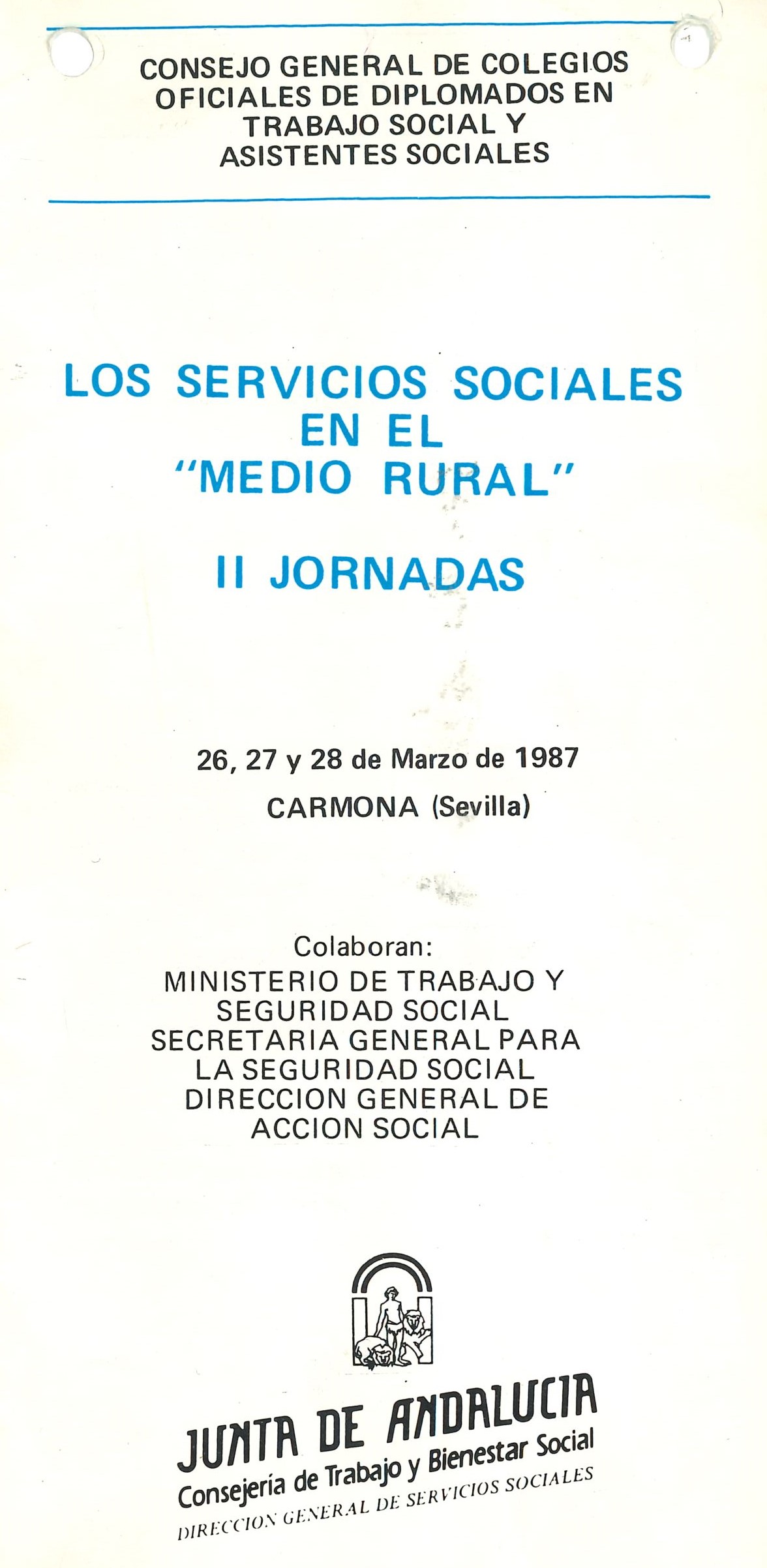 Continuamos descubriendo el Fondo Documental Patro Las Heras. En esta ocasión os traemos las II Jornadas de Servicios Sociales en el Medio Rural, celebradas en Carmona (Sevilla) en marzo en 1987 ya que fueron un nuevo punto de reflexión de los y las trabajadoras Sociales del medio rural. El rápido desarrollo e implantación que desde la asunción de competencias por las comunidades autónomas han ido tomando los Servicios Sociales en el medio rural ha obligado a desarrollar considerablemente los modelos organizativos y estructurales de los mismos.