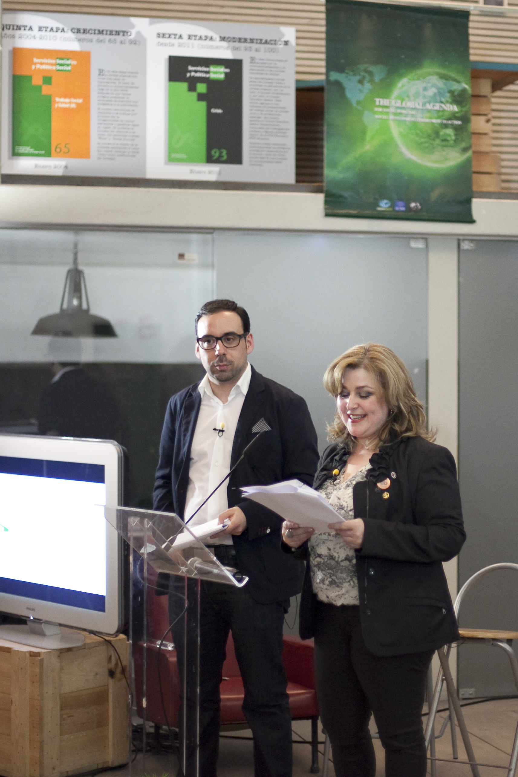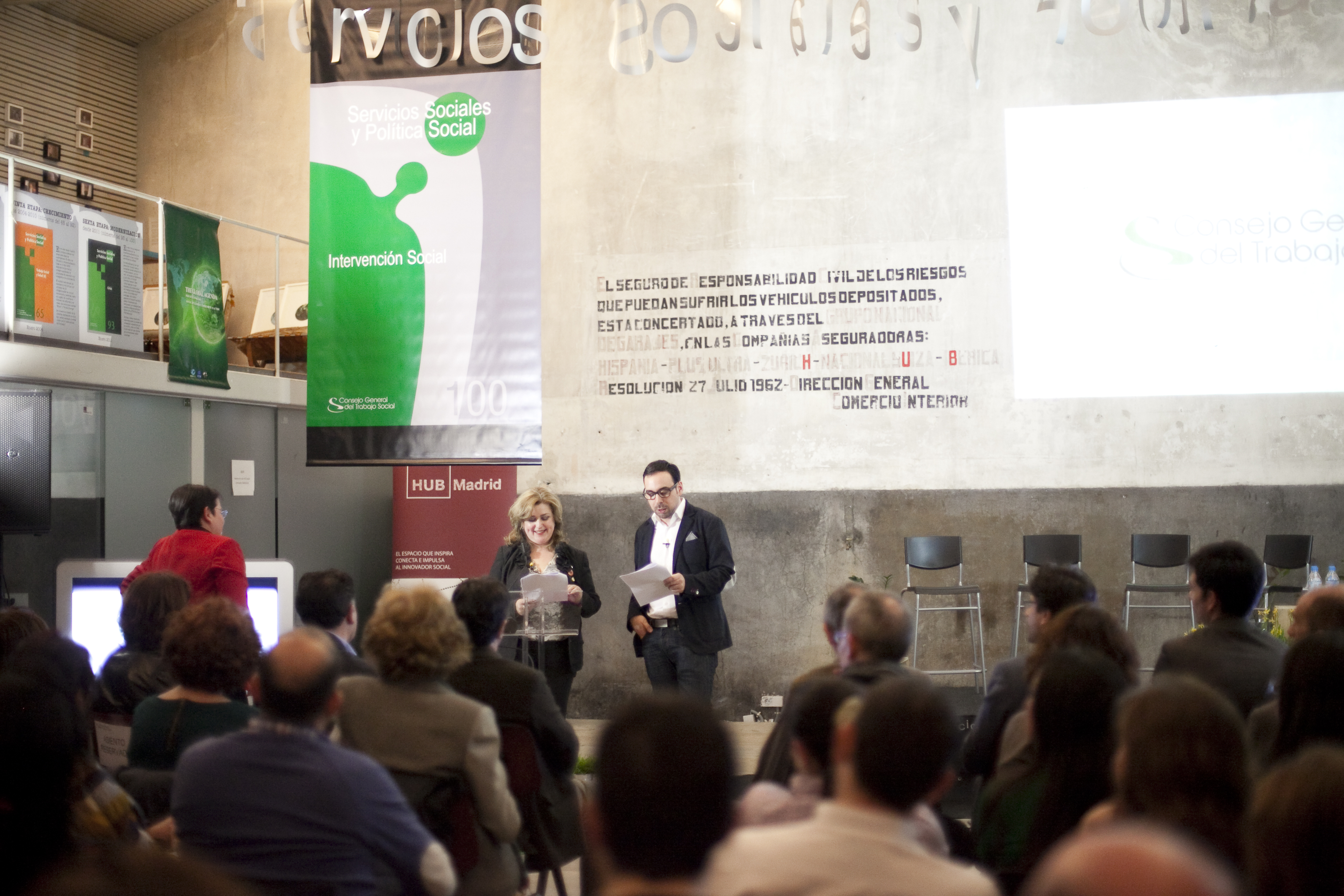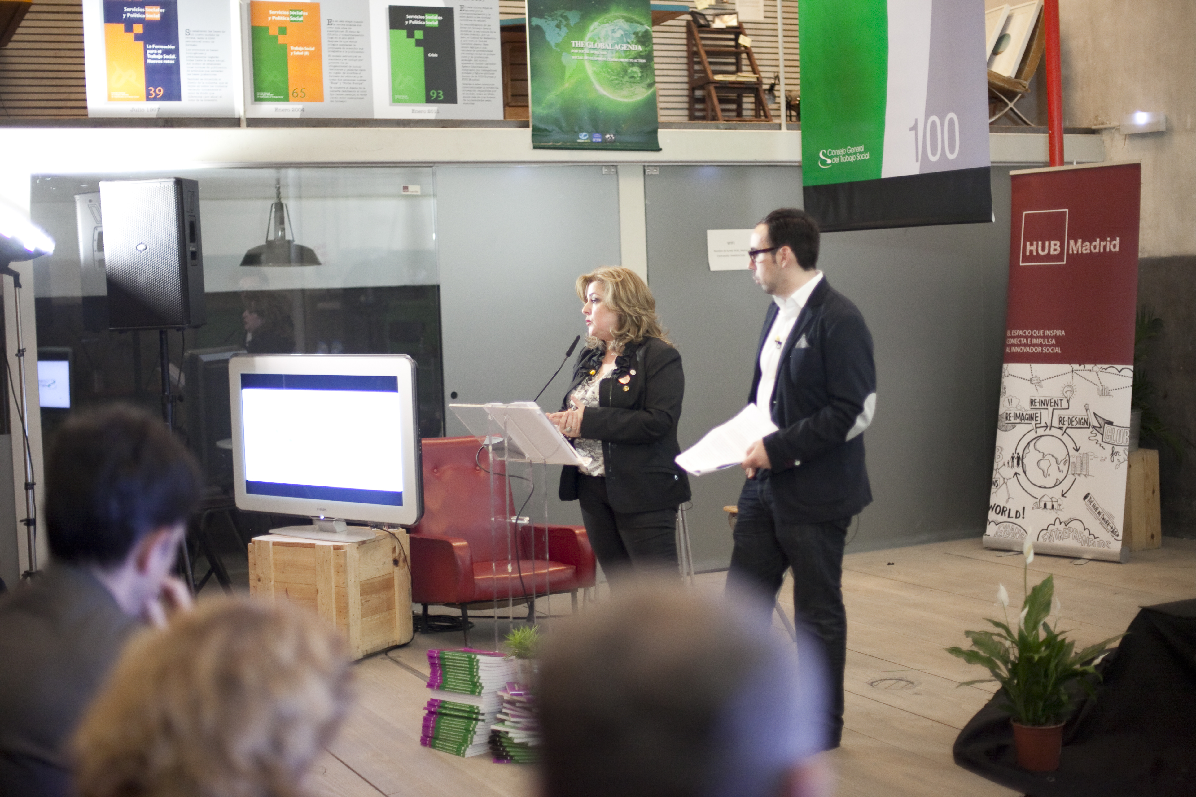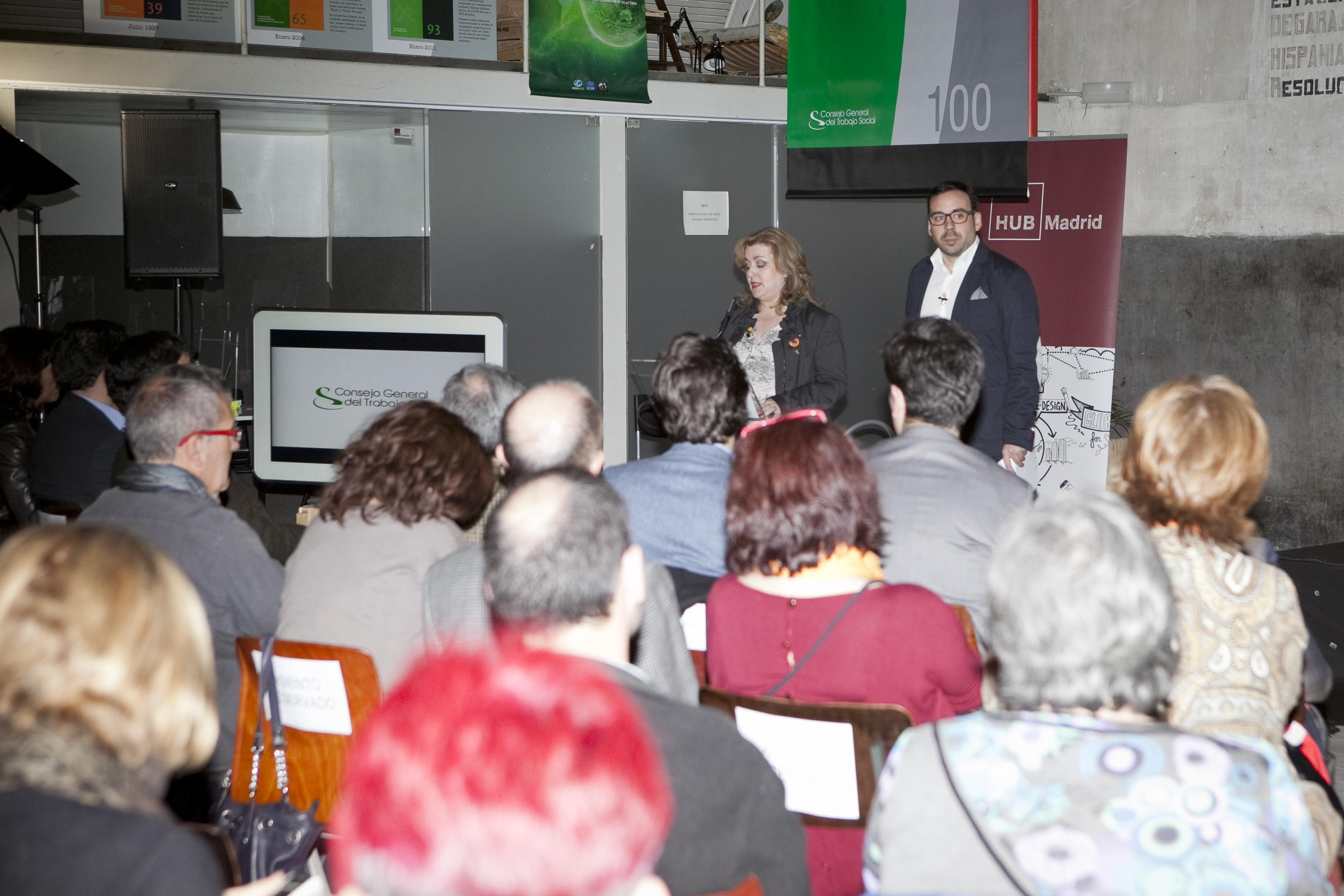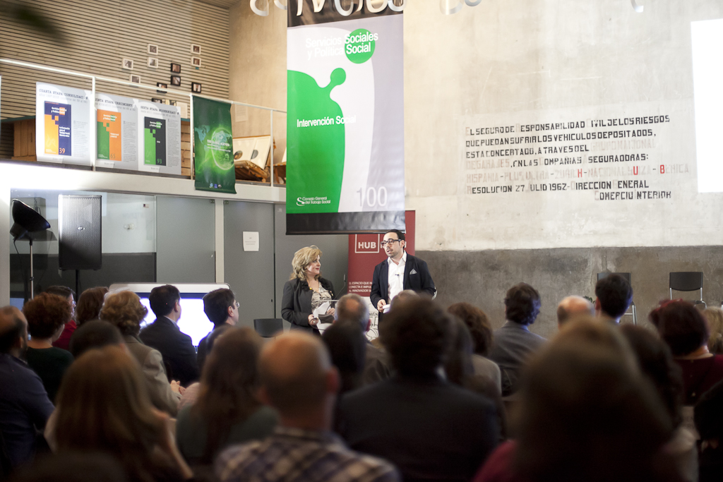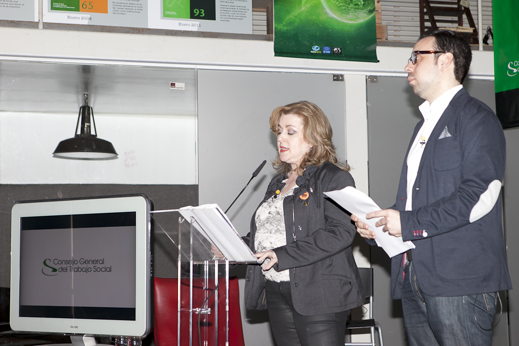La defensa de los servicios sociales y los derechos de las personas centró el acto, que se celebró en Hub Madrid, un espacio de coworking destinado al emprendimiento social. La presidenta del CGTS, Ana Lima, que presentó el acto junto al tesorero de la organización, Manuel Gutiérrez, destacó que los continuos recortes empujan a los y las trabajadoras sociales “a liderar el cambio social”. Lima explicó cómo desde la Federación Internacional del Trabajo Social (FITS), se insta a los profesionales “a participar en los movimientos sociales y a denunciar la discriminación que generan las políticas de austeridad puestas en marcha en Europa”. En este sentido, destacó el impulso que el CGTS, a través de la red colegial, está dando a la Marea Naranja, la creación de la Alianza en Defensa del Sistema Público de Servicios Sociales y el papel activo en la Cumbre Social.