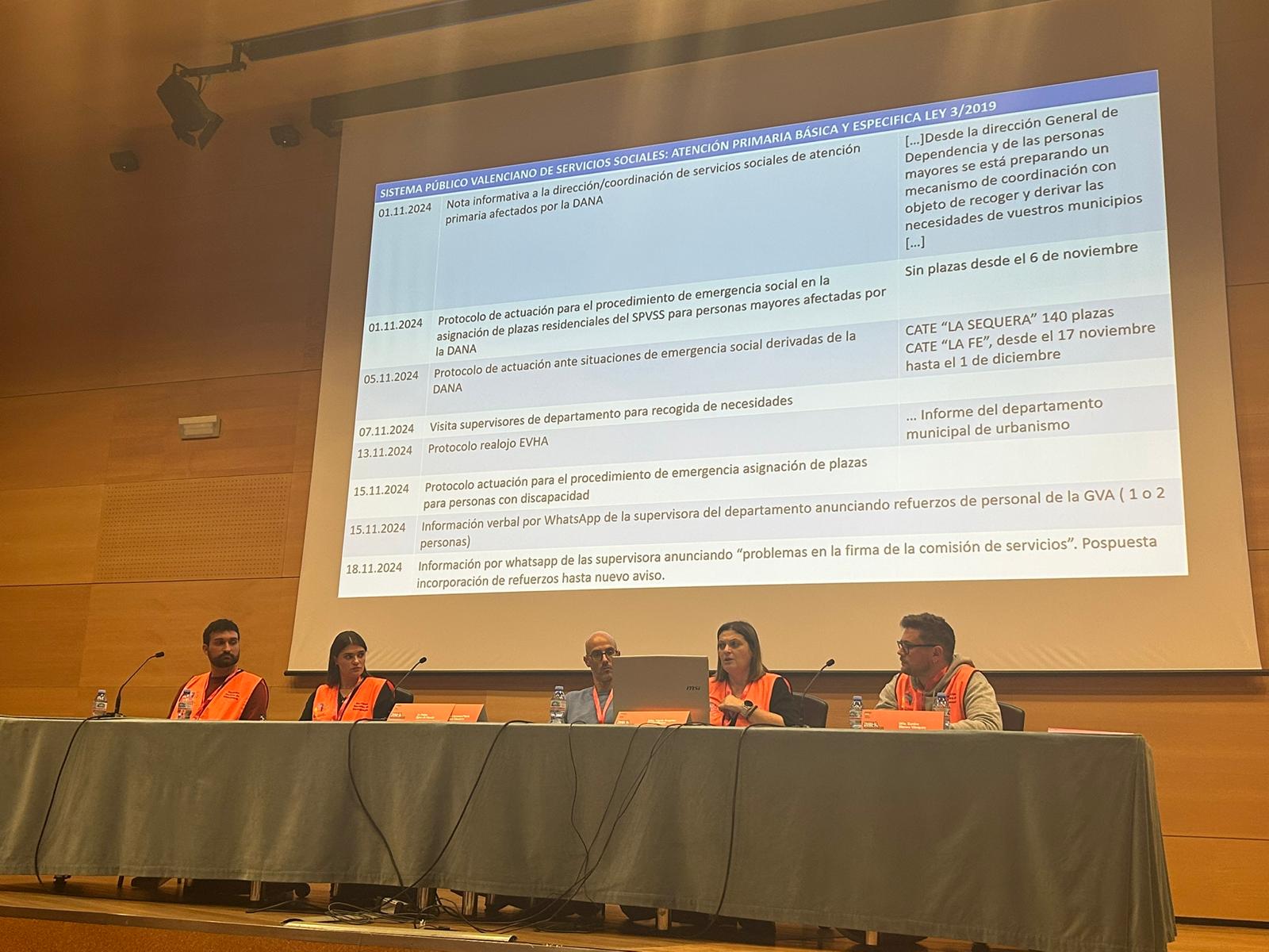 La tarde contó con las experiencias en la intervención en emergencias desde el Trabajo Social a nivel nacional con las experiencias de los servicios sociales de Atención primaria de Alfafar (Valencia) tras la DANA y la intervención de la Unidad de Trabajo Social del hospital Vall d´Hebron durante el COVID-19; a nivel autonómico de la Región de Murcia con las experiencias de los servicios sociales de Lorca tras el terremoto en 2011 y la intervención social desde el SEMAS con familiares de las víctimas del Incendio de las discotecas de la zona de ocio Atalayas de Murcia en 2023; y desde los Colegios Profesionales de Trabajo Social, se expuso la intervención desde el Grupo Estatal de Intervención en Emergencias Sociales del Consejo General del Trabajo Social (GEIES); la intervención en la Erupción del Volcán Tajogaite en la isla de La Palma en 2021 del Equipo de Diagnóstico e Intervención Social del COTS de Santa Cruz de Tenerife y la intervención en las inundaciones de Los Alcázares por la DANA de 2019 por parte del Grupo de Emergencias del Colegio Oficial de Trabajo Social de la Región de Murcia.