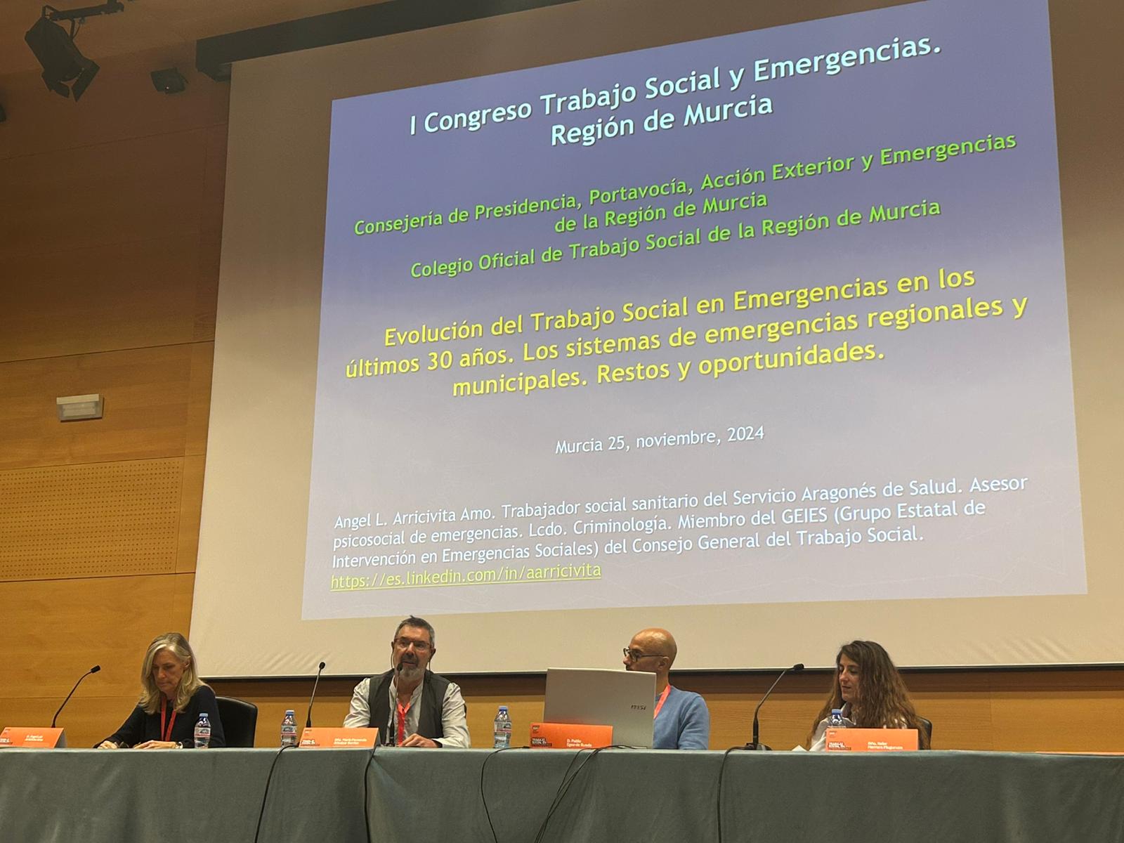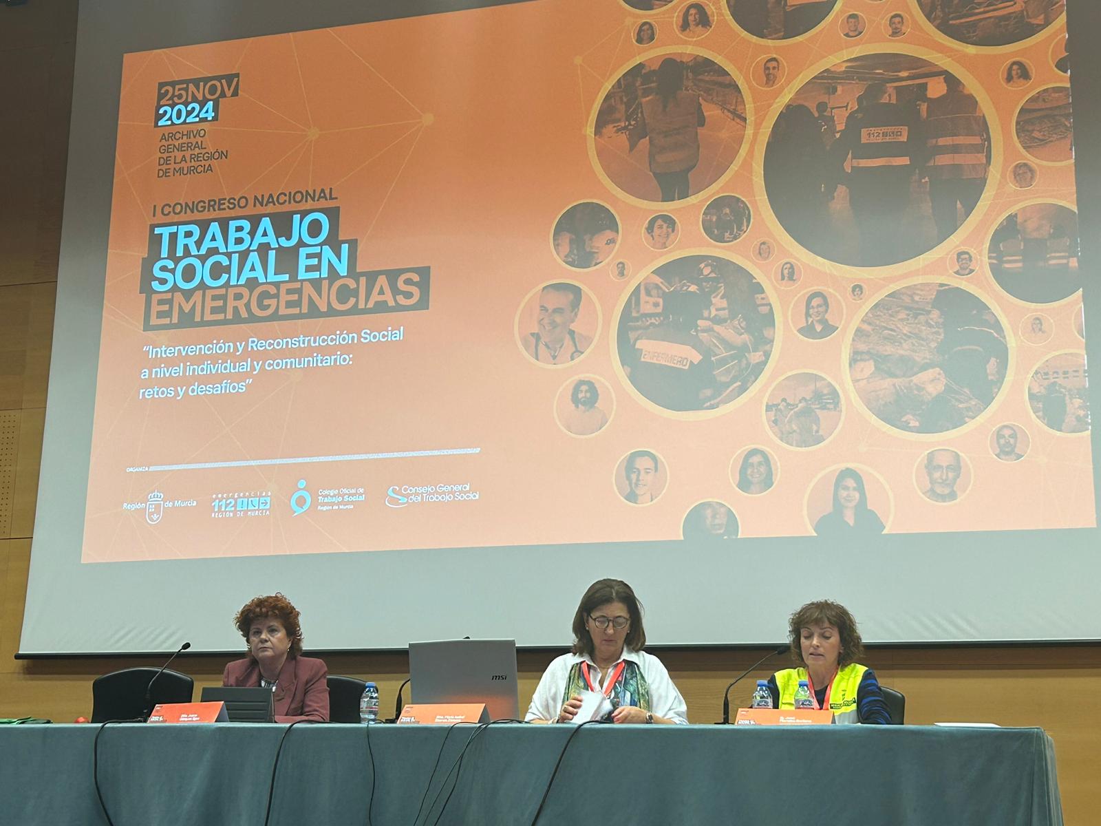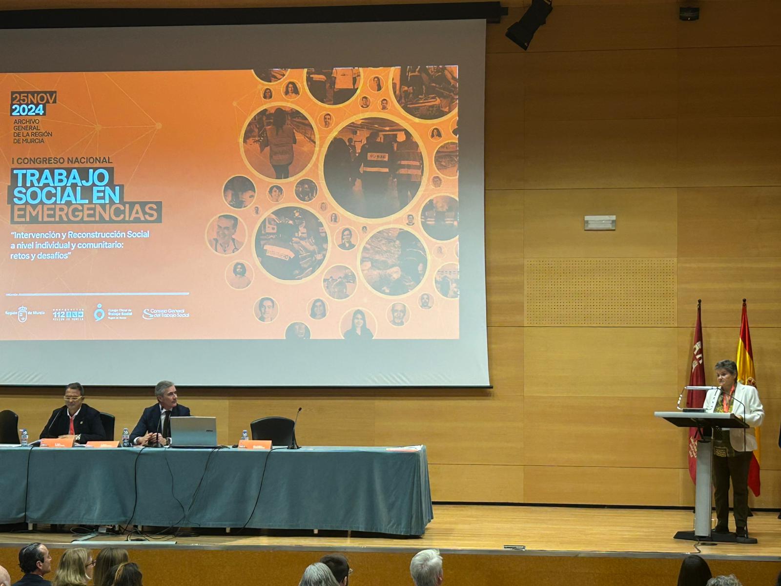 Este 25 de noviembre se ha celebrado en el Archivo General de la Región de Murcia el I Congreso Nacional de Trabajo Social en Emergencias, bajo el lema “Intervención y reconstrucción social a nivel individual y comunitario: retos y desafíos. El evento organizado por la Dirección General de Seguridad Ciudadana y Emergencias de la Región de Murcia y el Colegio Oficial de Trabajo Social de la Región de Murcia, en colaboración con el Consejo General del Trabajo Social, tuvo un gran éxito de convocatoria con 200 profesionales del Trabajo Social, estudiantes, y personal de los servicios de emergencias de los ámbitos municipal, regional y estatal y del Sistema nacional de Protección Civil en modalidad presencial y más de 800 personas en modalidad online.