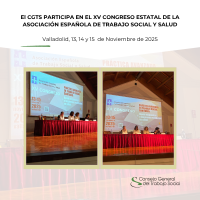 Además, el Consejo General del Trabajo Social (CGTS) ha colaborado activamente en la organización del Congreso como entidad patrocinadora, contribuyendo a la elaboración de materiales destinados a las y los congresistas, a la divulgación y difusión del evento en los canales profesionales y a la participación en el Comité Científico, reforzando así su compromiso con la excelencia y el desarrollo del trabajo social sanitario. Esta colaboración institucional pone de relieve la voluntad del CGTS de acompañar y apoyar los espacios de encuentro, investigación y reflexión que fortalecen la profesión.