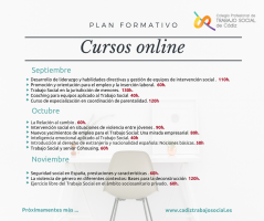 En el cartel podrás ver los cursos que tenemos preparados para los meses de septiembre a noviembre, en los próximos días estarán disponibles los cursos en nuestra web como es habitual, para consultar el detalle de la programación, fechas y precios. Os invitamos a compartir esta información y a estar pendiente de las nuevas propuestas que iremos compartiendo en la web y redes sociales.