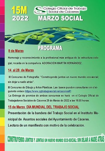 Os informamos del Programa elaborado por nuestro Colegio, con motivo del Día mundial del Trabajo Social 2022.