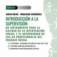 El Consejo General del Trabajo Social lanza el curso “Introducción a la supervisión: un instrumento para la calidad de la intervención social y el autocuidado de los/as profesionales del trabajo social”, con el objetivo de acercar a los/as participantes a los principios básicos, objetivos y metodología de la supervisión profesional y de equipos de Trabajo Social, así como proporcionarles conocimientos que les permitan identificar cuando está indicada la supervisión.