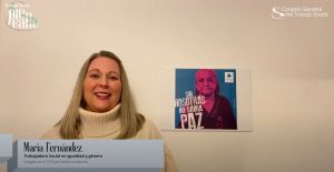 María Fernández, colegiada en el Colegio Oficial de Trabajo Social de Castilla- La Mancha, es quien protagoniza el vídeo de la campaña del mes de marzo. María es la trabajadora social responsable del área de Comunicación y Sensibilización de Movimiento por la Paz Castilla-La Mancha. En este vídeo María nos cuenta su labor con mujeres y familias en educación en igualdad.