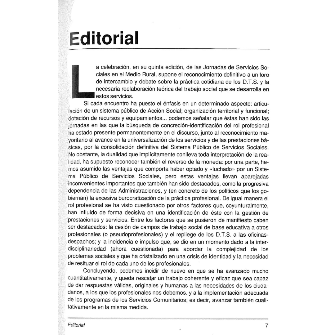 Se plantea una reorganización de la intervención profesional desde dos vertientes: la participación en equipos interdisciplinares y la capacidad de las trabajadoras/es sociales para asumir funciones directivas y de coordinación en los procesos de gestión de servicios.