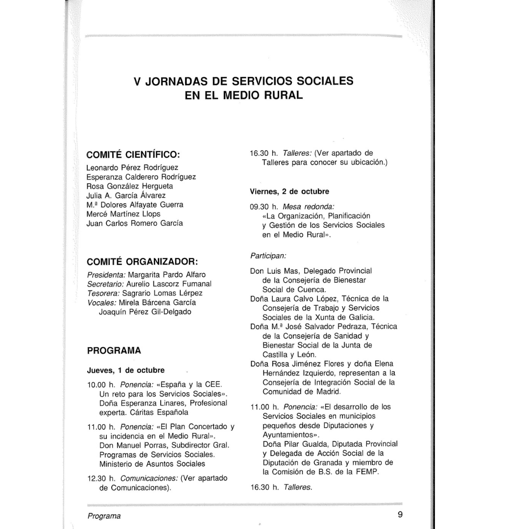V Jornadas de Servicios Sociales en el medio rural en Cuenca (Castilla-La Mancha), octubre 1992