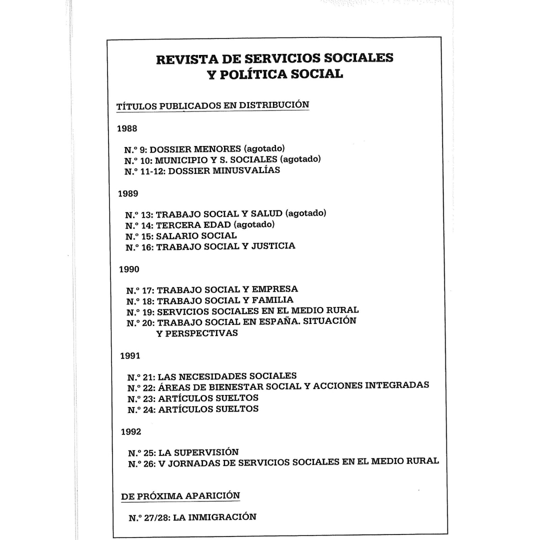 Las Comunicaciones de las Jornadas fueron recogidas en el Nº 26 de la Revista Servicios Sociales y Política Social.