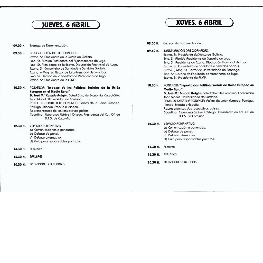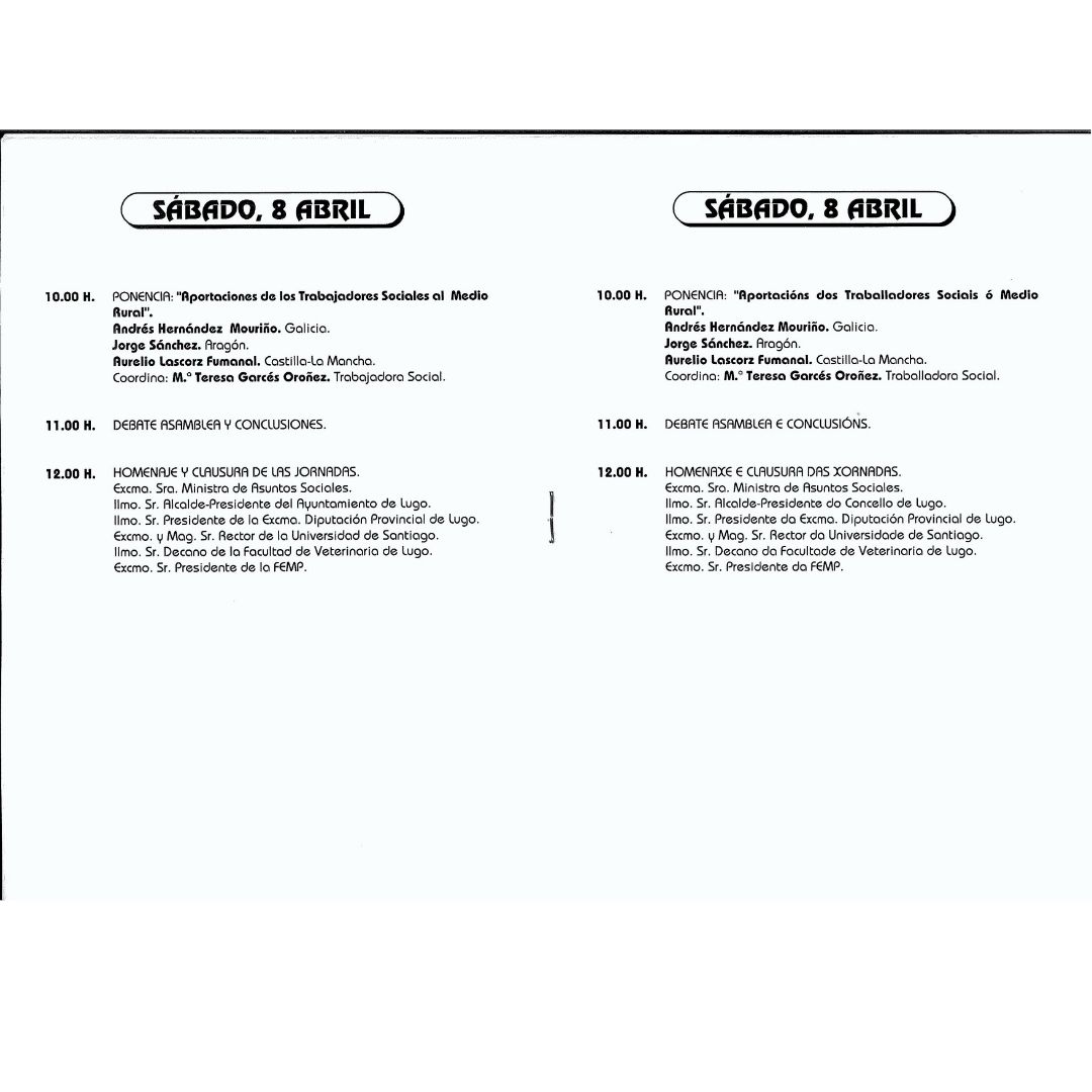 Esta semana en nuestro recorrido histórico traemos las VI Jornadas de Servicios Sociales en el medio rural celebradas el 6,7 y 8 de abril de 1995 en Lugo.