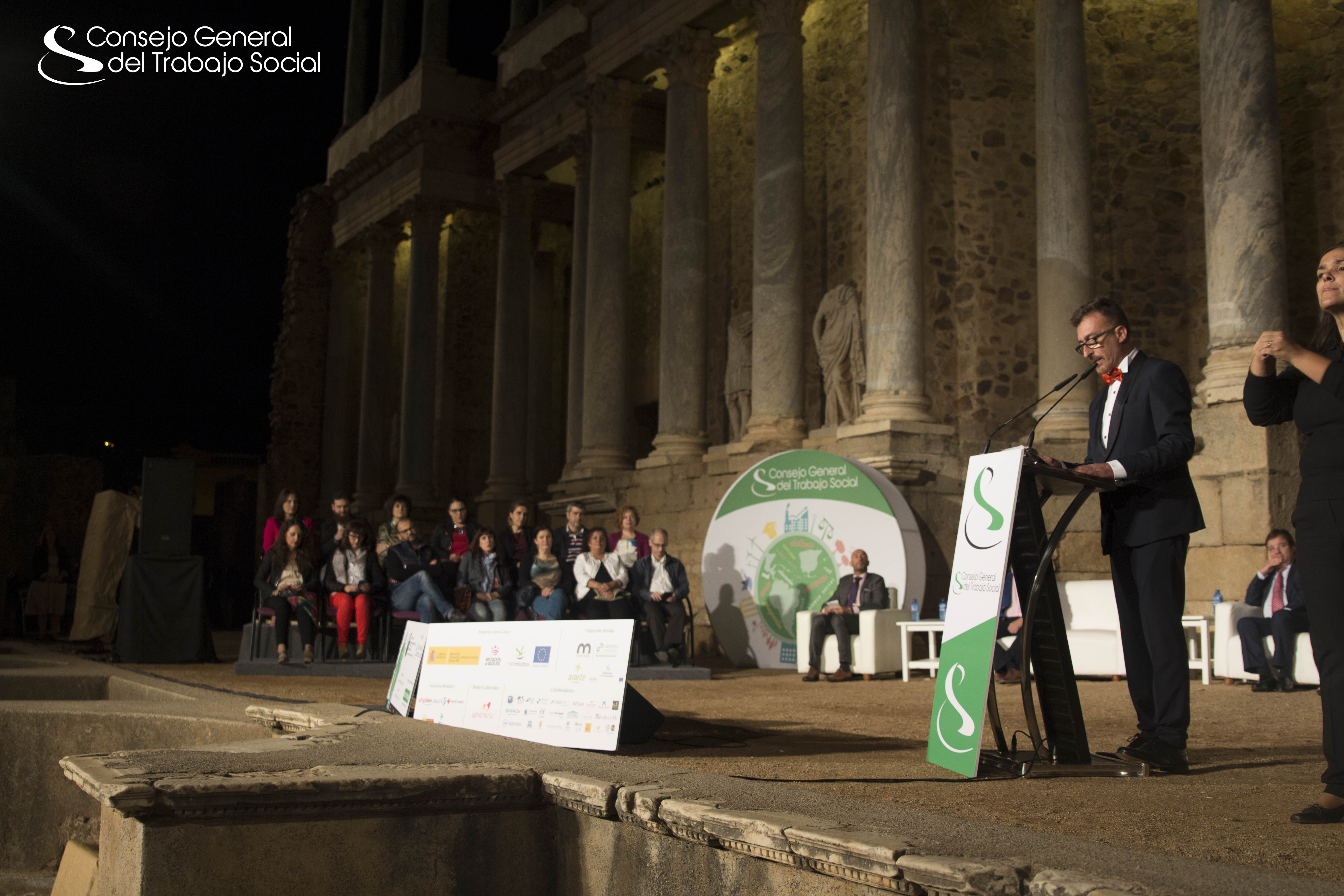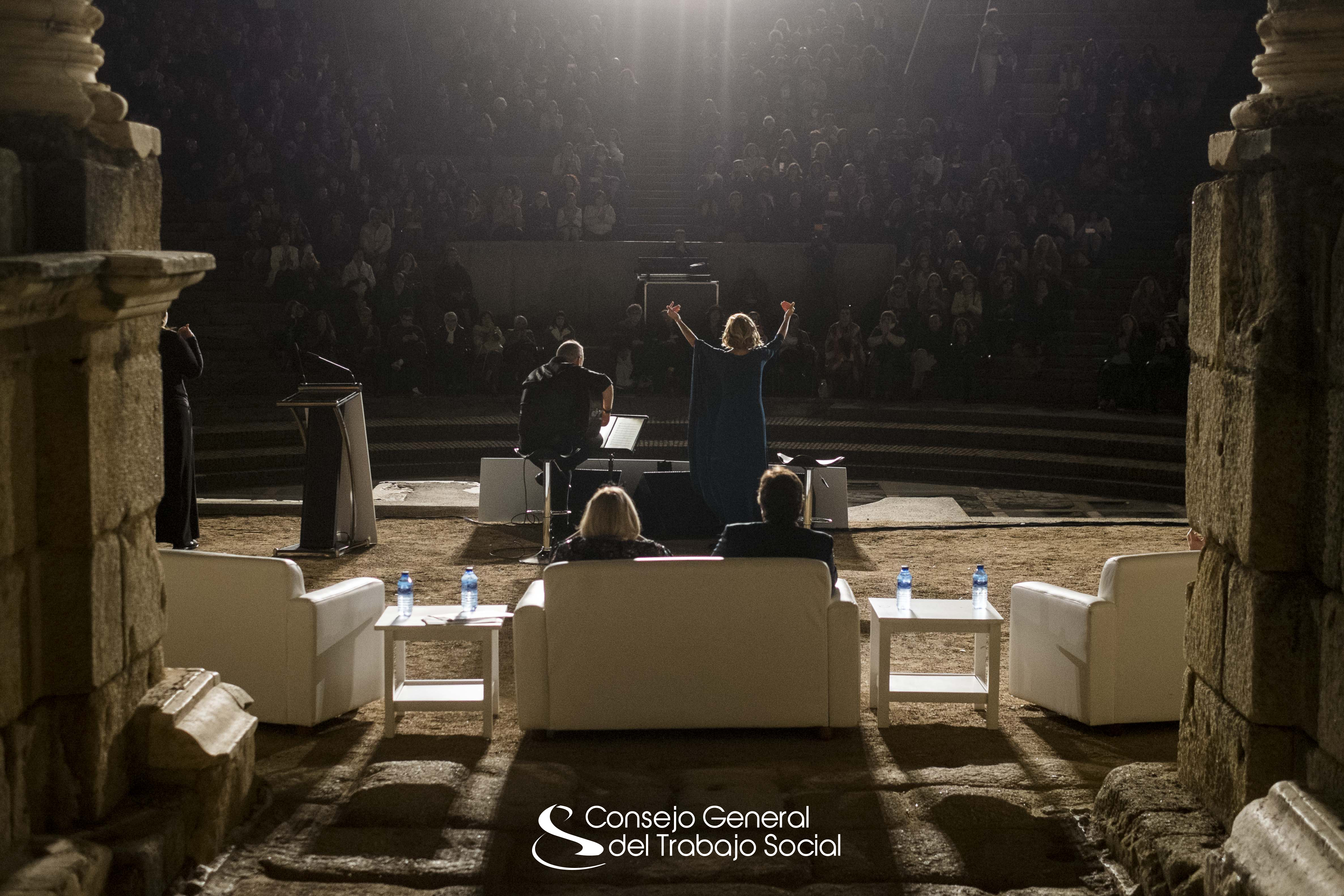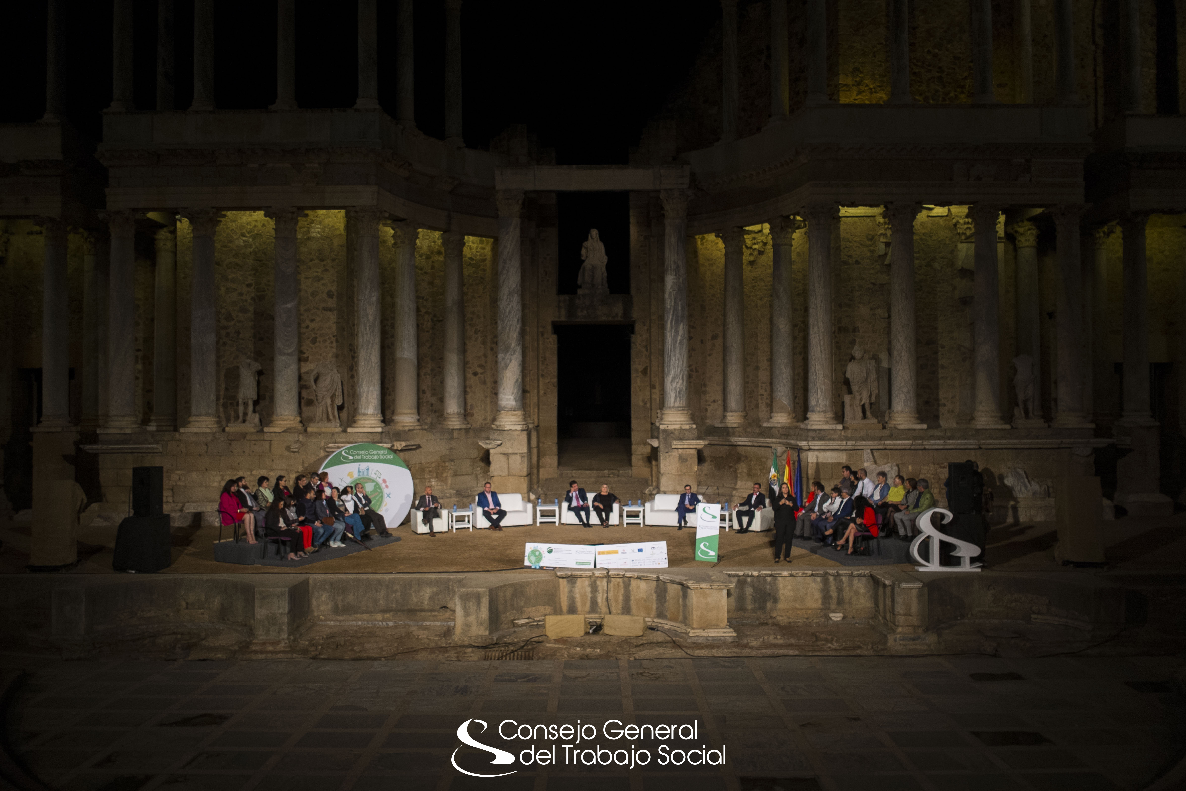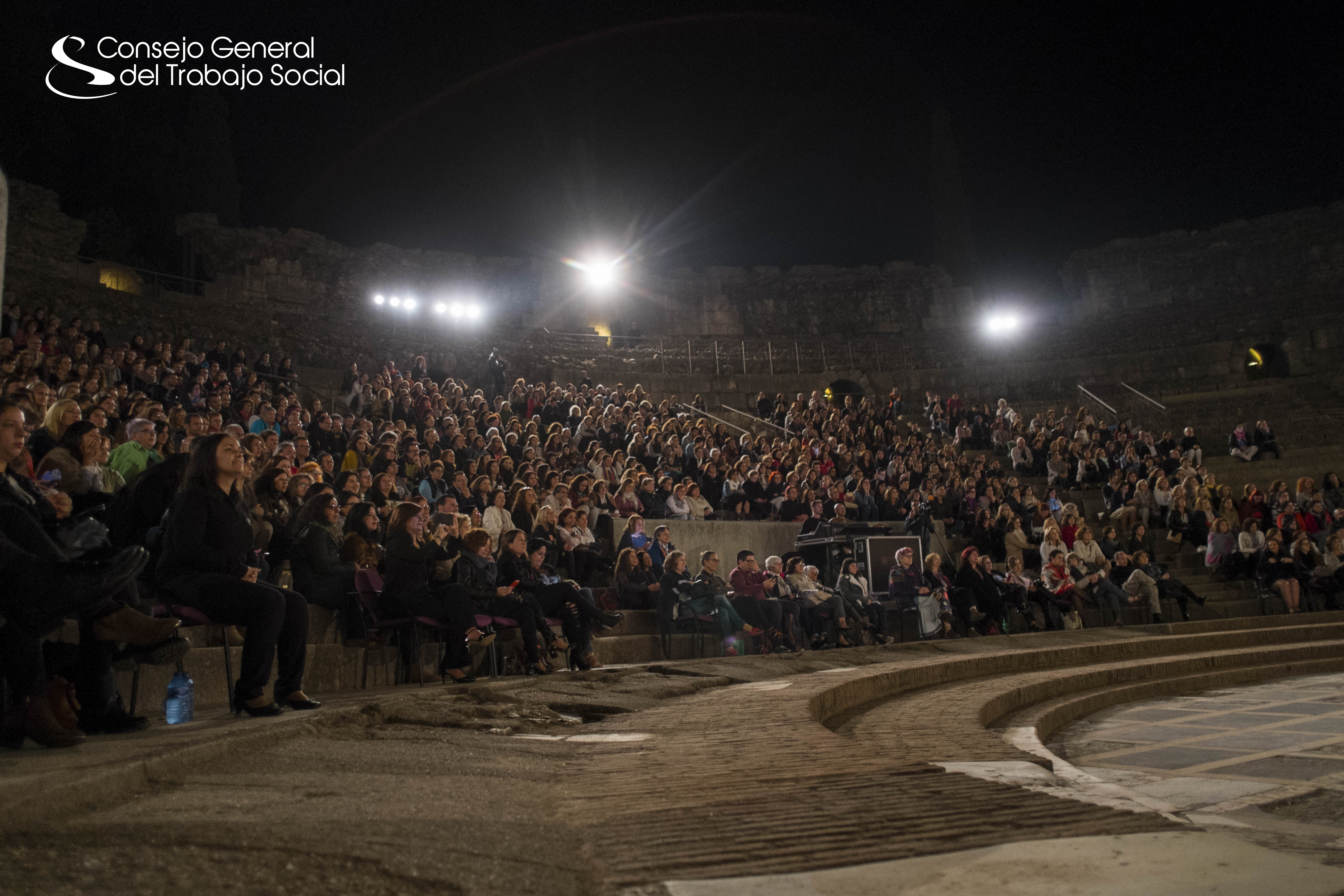 El evento se inauguró en el Teatro Romano de Mérida, un marco incomparable que contó con la actuación de la cantante Sole Giménez. En el acto intervinieron el presidente de la Junta de Extremadura, Guillermo Fernández Vara; la presidenta del Consejo General del Trabajo Social, Ana I Lima; el alcalde de Mérida, Antonio Rodríguez Osuna; el presidente de la Diputación de Badajoz, Miguel A. Gallargo Miranda; el subdirector general de Diálogo Civil del Ministerio de Sanidad, Servicios Sociales e Igualdad, Jesús Celada y el presidente del Colegio Oficial de Trabajo Social de Badajoz, Antonio Nisa Cuesta.