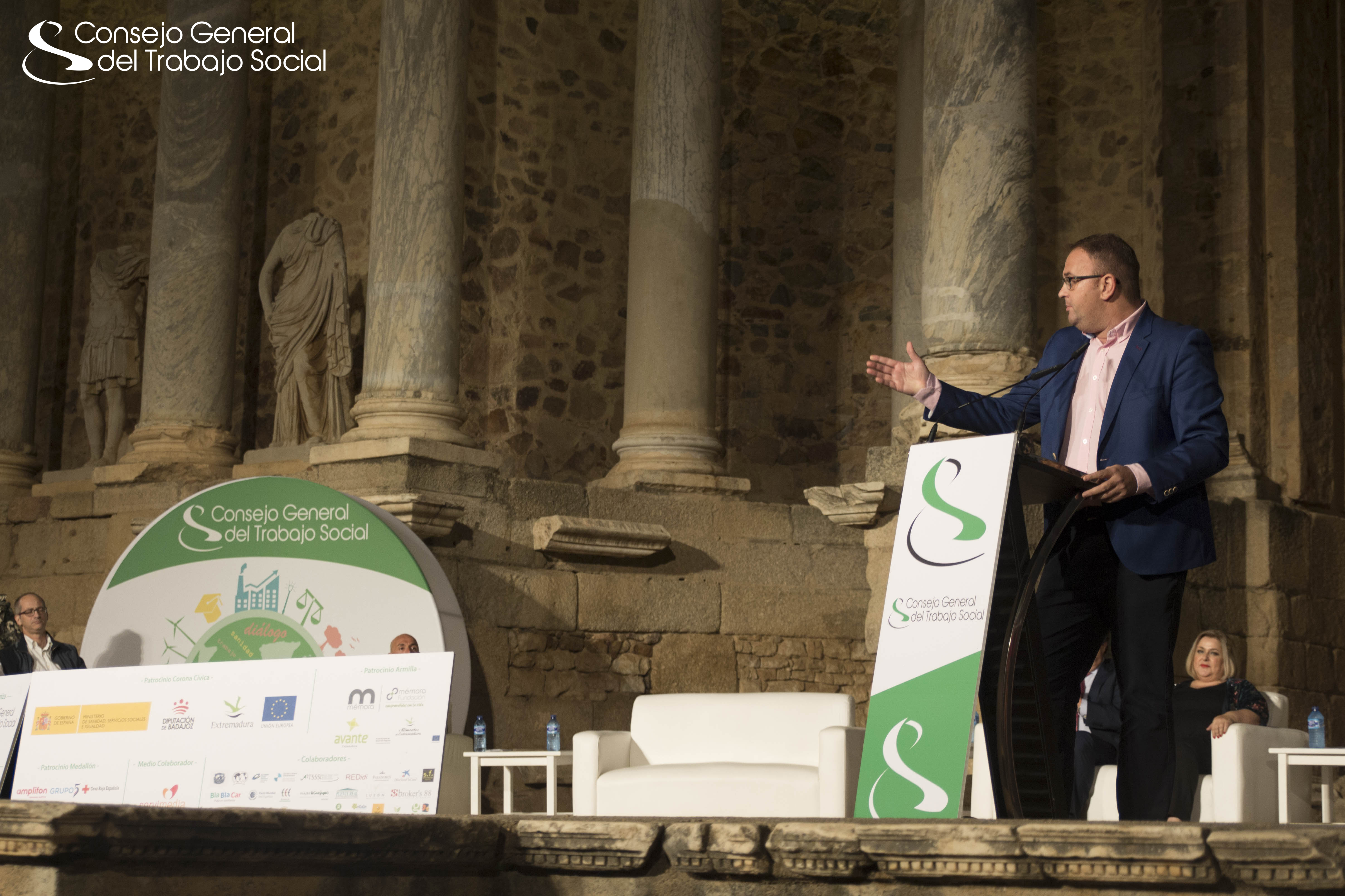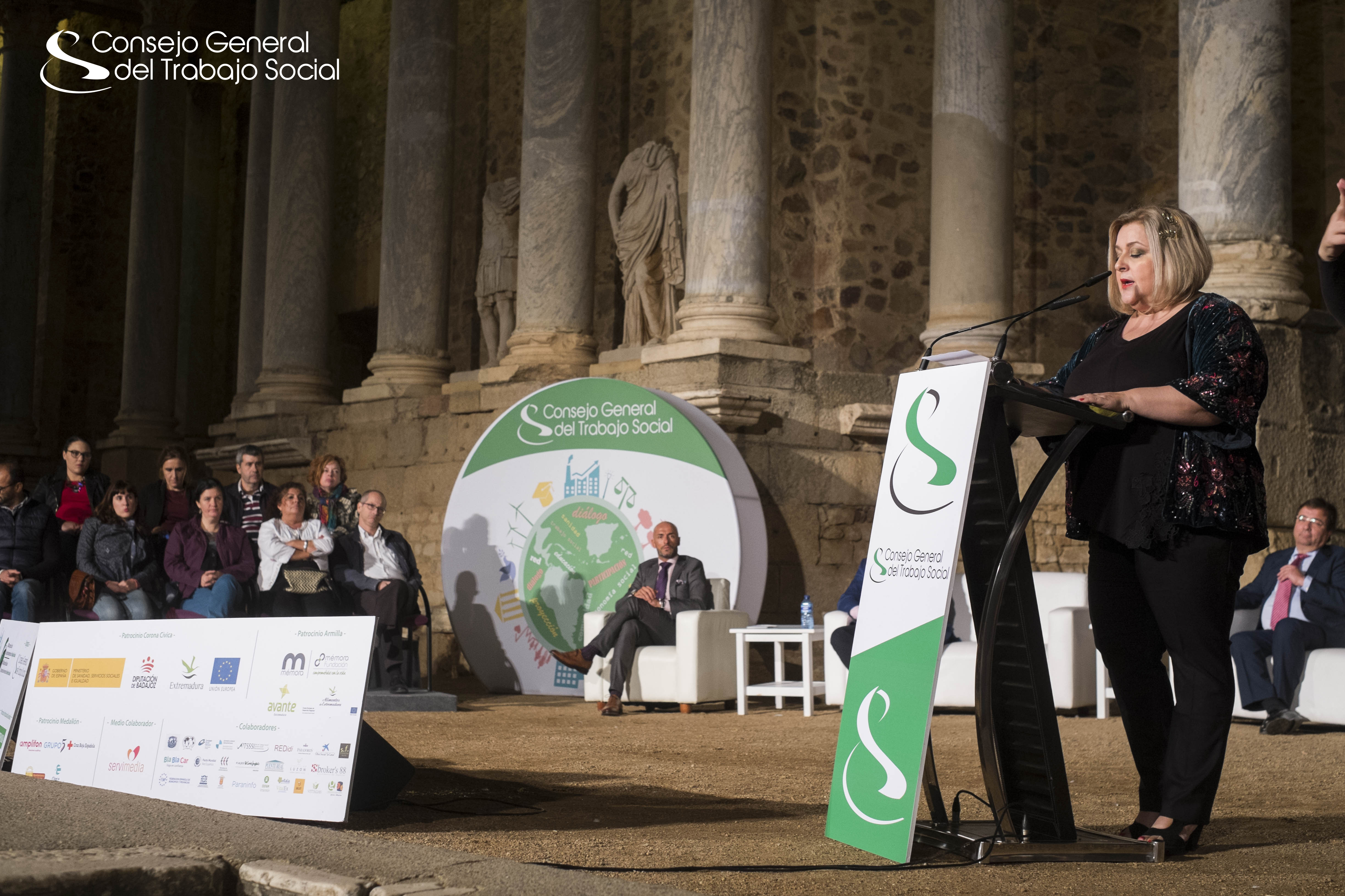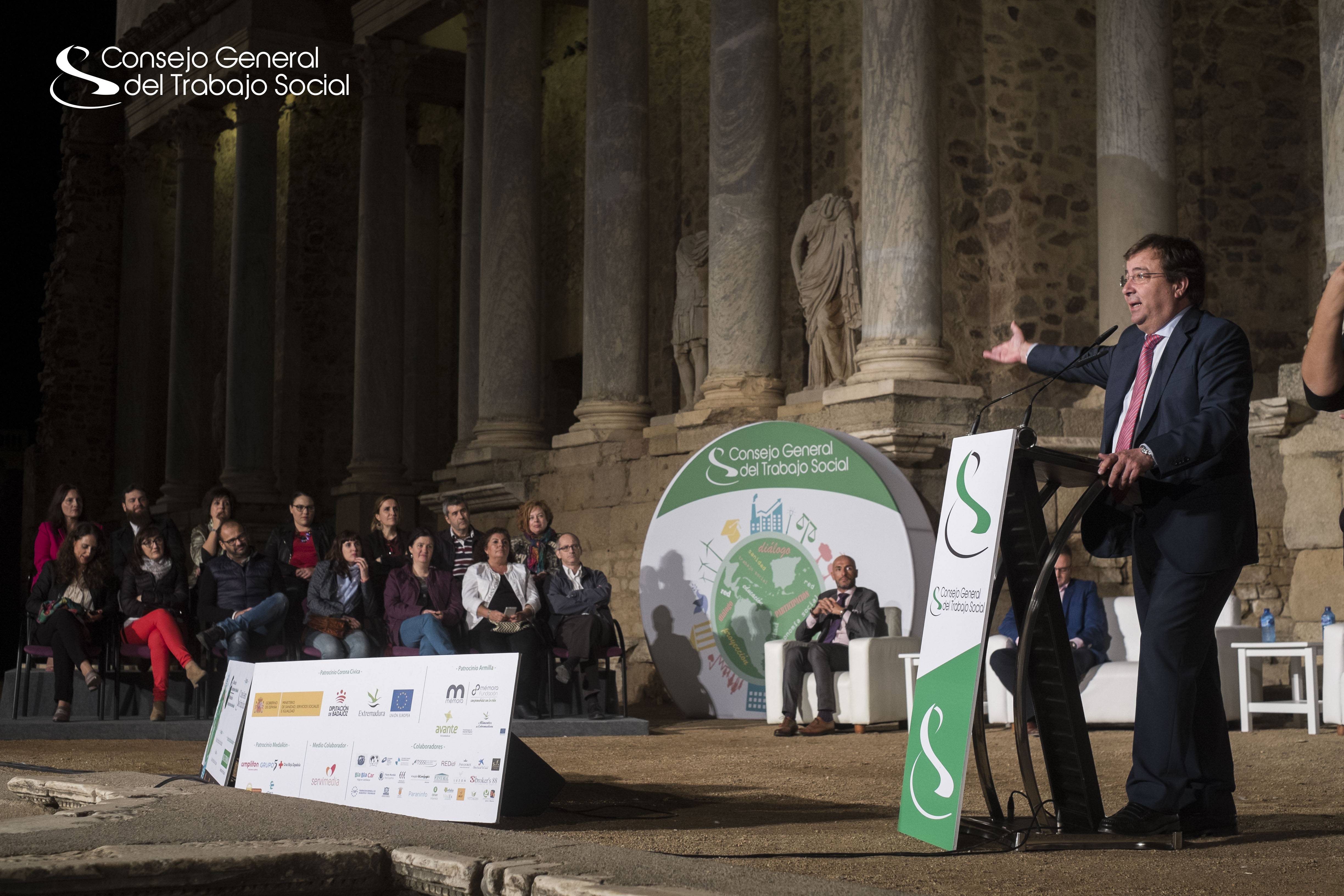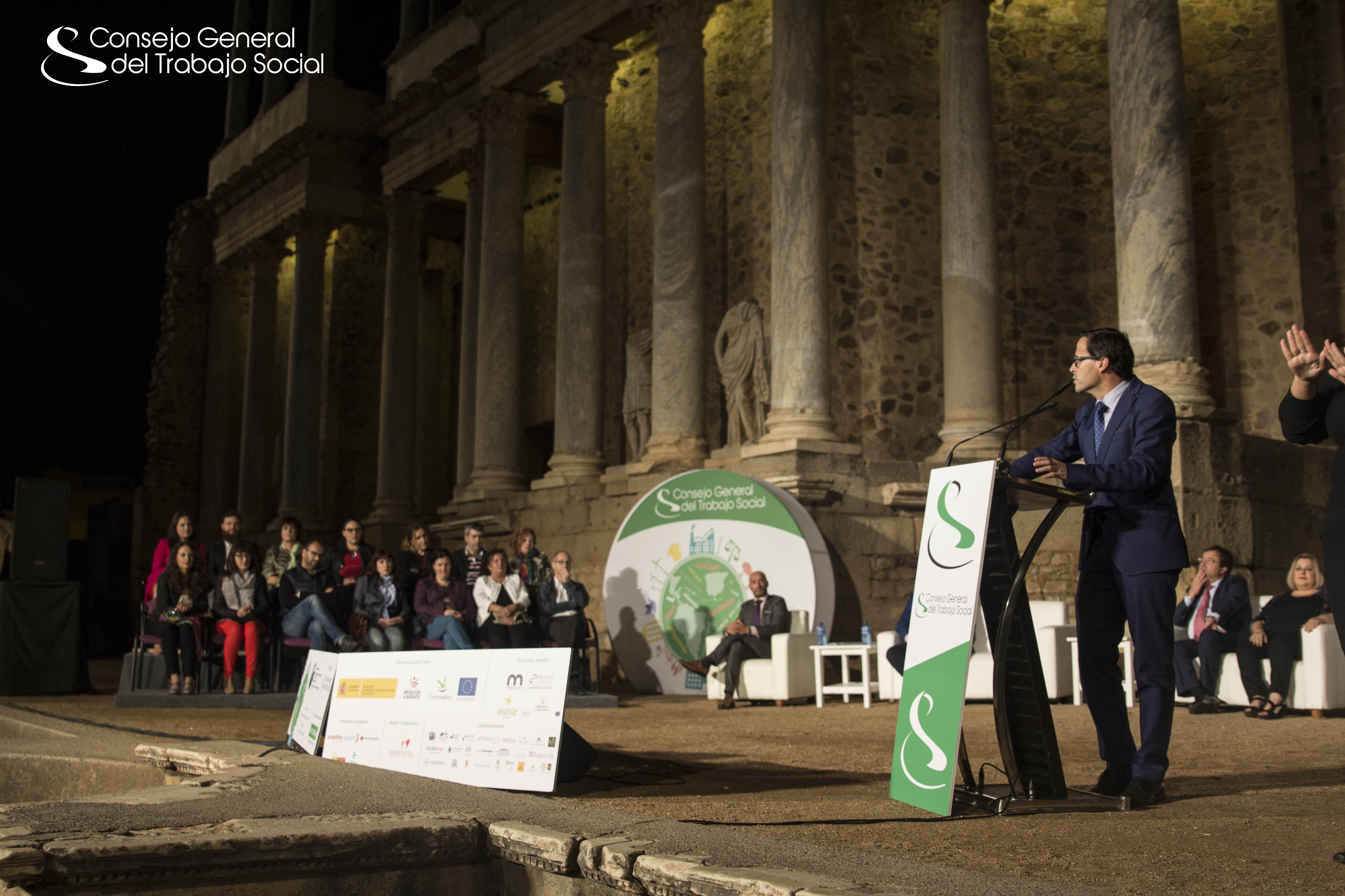 El evento se inauguró en el Teatro Romano de Mérida, un marco incomparable que contó con la actuación de la cantante Sole Giménez. En el acto intervinieron el presidente de la Junta de Extremadura, Guillermo Fernández Vara; la presidenta del Consejo General del Trabajo Social, Ana I Lima; el alcalde de Mérida, Antonio Rodríguez Osuna; el presidente de la Diputación de Badajoz, Miguel A. Gallargo Miranda; el subdirector general de Diálogo Civil del Ministerio de Sanidad, Servicios Sociales e Igualdad, Jesús Celada y el presidente del Colegio Oficial de Trabajo Social de Badajoz, Antonio Nisa Cuesta.