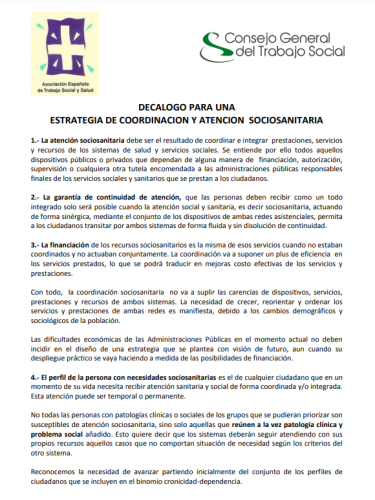 DECÁLOGO PARA UNA ESTRATÉGIA DE COORDINACIÓN Y ATENCIÓN SOCIOSANITARIA