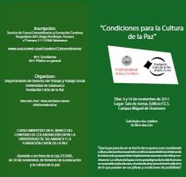 Os dejo información referente a un curso que organiza la compañera y profesora de la USAL, Nuría del Álamo Gómez: ¨Condiciones para la cultura de la Paz¨.