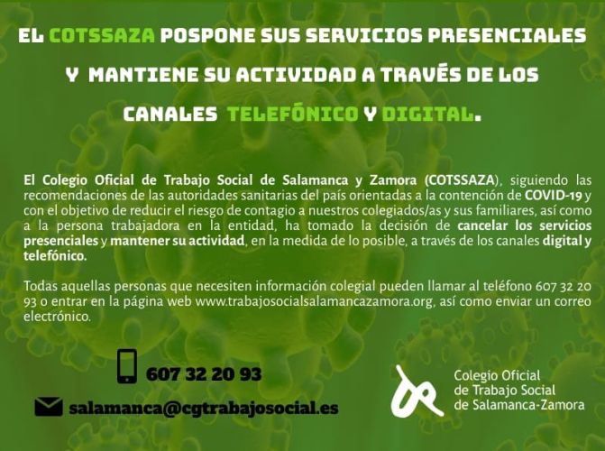 COMUNICADO. Comunicado del COTS de Salamanca y Zamora ante la situación de emergencia social y sanitaria derivada del COVID19