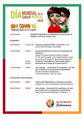 SALAMANCA. DÍA MUNDIAL DE LA SALUD MENTAL. SOY COMO TÚ AUNQUE NO LO SEPAS