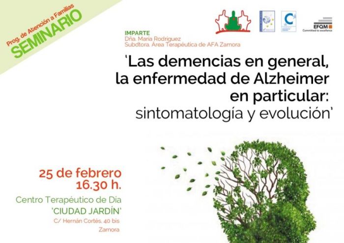 “Las demencias en general y la enfermedad de Alzheimer en particular: sintomatología y evolución” es el título del seminario que se impartirá dentro del Programa de Atención a Familias de AFA Zamora.