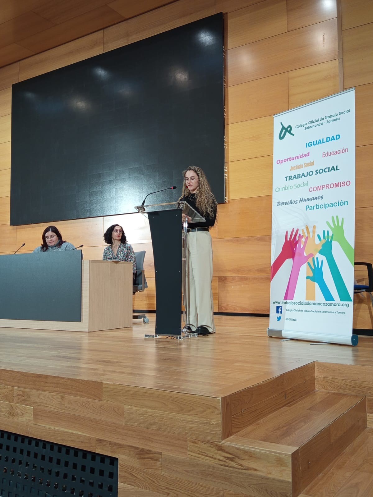 En el desarrollo de la jornada entregamos el Premio al Mejor Trabajo de Fin de Grado en Trabajo Social del curso académico 2023/24 a Patricia Curto de Miguel por su trabajo titulado “Salud mental y consumo de drogas: un proyecto de mejora de calidad vida”, contando a su vez con la participación de la premiada, quién trasladó a los asistentes unas breves palabras sobre su trabajo.