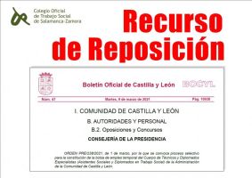 <p>El Consejo Autonómico del Trabajo Social de Castilla y León junto con los colegios provinciales hemos presentado ante la Junta de Castilla y León un RECURSO DE REPOSICIÓN a las Bases por las que se regirá el proceso selectivo para la constitución de la bolsa de empleo temporal del Cuerpo de Técnicos y Diplomados Especialistas (Asistentes Sociales y Diplomados en Trabajo Social) de la Administración de la Comunidad de Castilla y León, publicadas en el Boletín Oficial de Castilla y León nº 47 de 9 de marzo de 2021 (<a href=“https://bocyl.jcyl.es/boletines/2021/03/09/pdf/BOCYL-D-09032021-8.pdf”>ORDEN PRE/238/2021, de 1 de marzo</a>).</p><p>En dicho recurso solicitamos la modificación de las bases de la convocatoria ‘<em>contemplando en el Baremo de Méritos, los servicios prestados en entidades privadas en la categoría de Trabajador/a Social, tal como recogen de forma mayoritaria las convocatorias de plazas de esta categoría en las diferentes administraciones públicas</em>’.</p><p>Puedes consultar el contenido del recurso en el enlace adjunto. </p>
