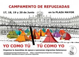 Por eso vamos a acampar, desde el viernes 17 hasta el lunes 20 (día mundial del refugiado), en la Plaza Mayor de Salamanca.