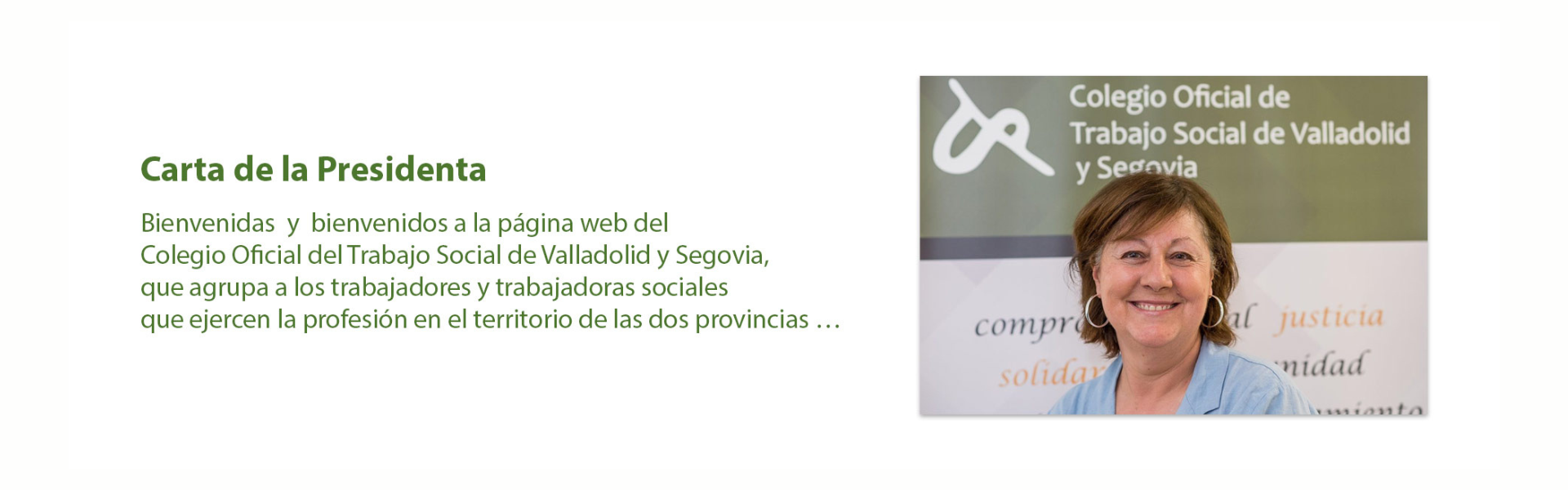 Bienvenidas y bienvenidos a la página web del Colegio Oficial del Trabajo Social de Valladolid y Segovia, que agrupa a los trabajadores y trabajadoras sociales que ejercen la profesión en el territorio de las dos provincias.
