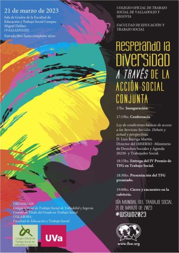 El Día Mundial del Trabajo Social se celebra este año el martes 21 de marzo y el Colegio Oficial de Trabajo Social de Valladolid y Segovia (COTSVa_Sg) ha organizado un acto que contará con una charla a cargo de Luis Barriga y la entrega del IV Premio TFG de Trabajo Social. Bajo el lema ‘Respetar la diversidad a través de la acción social conjunta’, el evento comenzará a las 17 horas en la sala de grados de la Facultad de Educación y Trabajo Social (FEyTS) de la Universidad de Valladolid (UVa), con entrada libre hasta completar el aforo.